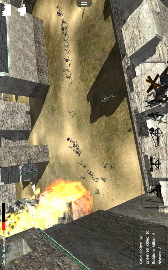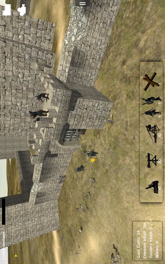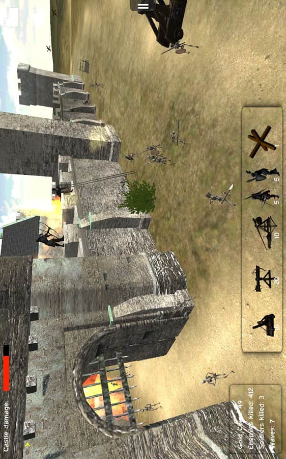Kale Savunması 3D - Kalenizi saldıran düşmandan koruyun. Kalenin kuşatılmasını önleyin, düşmanın kalenin ana kapısına yaklaşmasına izin vermeyin ve merdiven kurmalarına engel olun. Düşmanlara okçularla ateş edin ve savunmamızı aşmaya çalışan herkesin üstesinden gelin. Askerlerin yanı sıra, atış yapan yapılar, büyük çapraz oklar ve düşman askerlerinin geçişini zorlaştıran tahta kaleler de var.