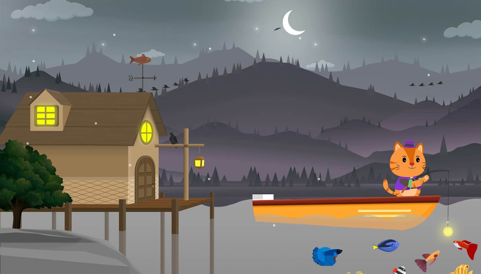 Bu huzurlu balık tutma oyunu bir kediye adanmıştır. Bu oyunda kedi, güzel bir denizde balık tutmaya çıkar. Sadece temel bir olta ile adadan başlayın. Oltaınızı ayarlayın, geliştirin ve en büyük ve tehlikeli balıkları yakalamak için çaba gösterin. Hatta köpek balığını bile yakalayabilirsiniz! Oyunda sevimli bir çizgi film grafiği, sakin müzik ve yavaş bir oyun akışı var. Zor bir günden sonra tam da aradığınız şey!