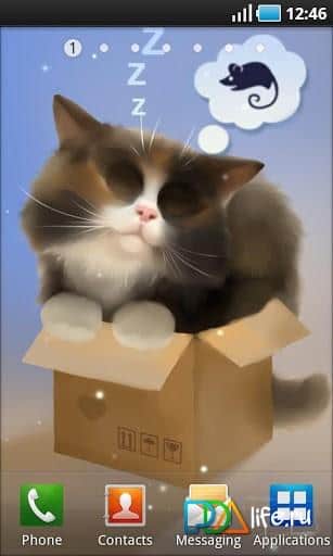 Kedi Kutuda - Yin The Black Cat ve Yin The Cat geliştiricilerinden Android akıllı telefon/tabletiniz için çekici canlı duvar kağıtları. Bu sefer Apofiss şirketi, kutunun içinde oturan tüylü bir kedi ile sizi mutlu edecek. Tüylü kedi, dokunuşunuza tepki verecek, mırıldanacak, bulut içinde düşüncelerini ifade edecek ve daha fazlasını yapacak.