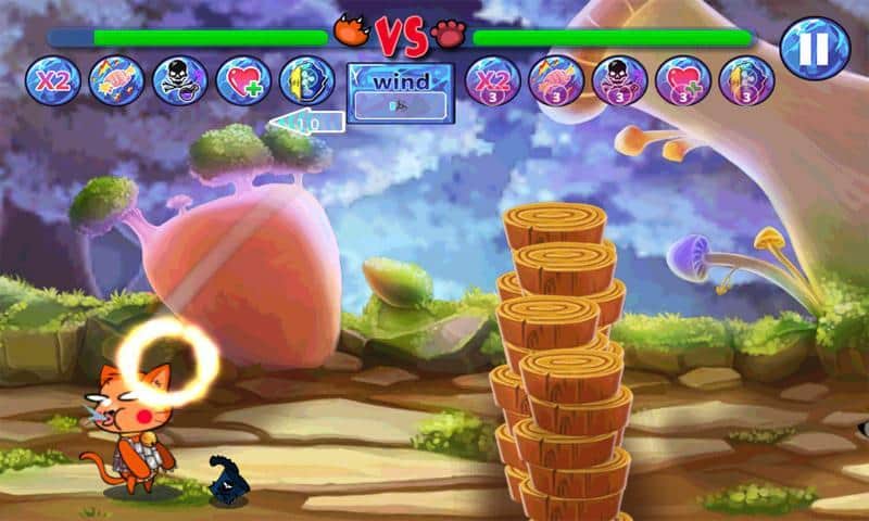 Kedi vs Köpek - kediler ve köpekler arasındaki çatışma, daha ilginç ne olabilir? Yüksek bir çitin iki tarafında bir kedi ve bir köpek var, her birinin yok etmesi gereken yaşam enerjisi var. Hayat seviyelerini düşürmek için engelin üzerinden çeşitli nesneler atın. Oyun sırasında saldırı gücünü artırmak için çeşitli bonuslar kullanın. Atış gücünü artırmak için düğmeyi basılı tutun ve rüzgarın hızına dikkat edin, bu, merminizin uçuş yolunu büyük ölçüde etkiler. Oyunda iki mod var, biri tek oyunculu ve diğeri aynı cihazda iki oyunculu çok oyunculu mod.