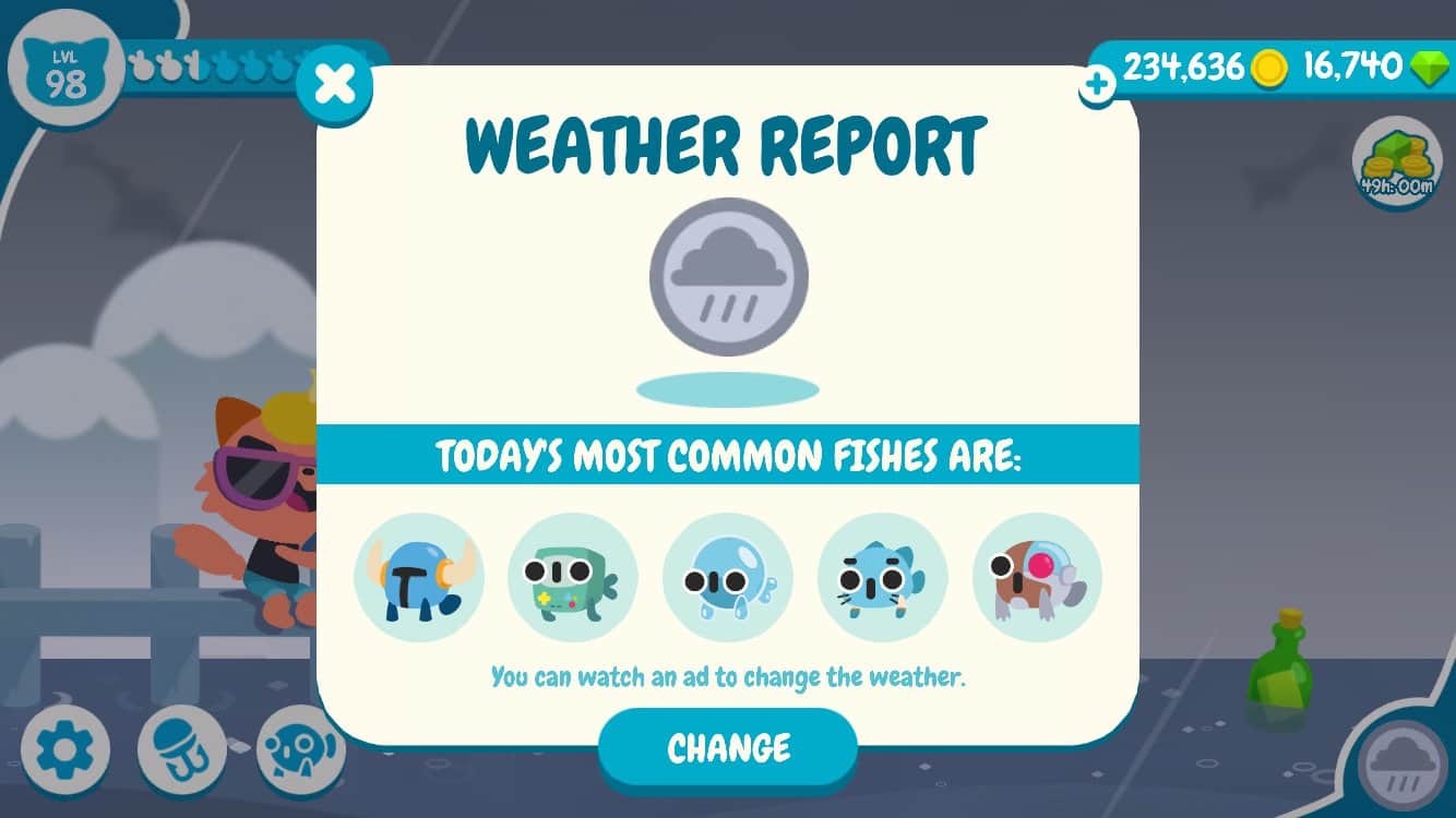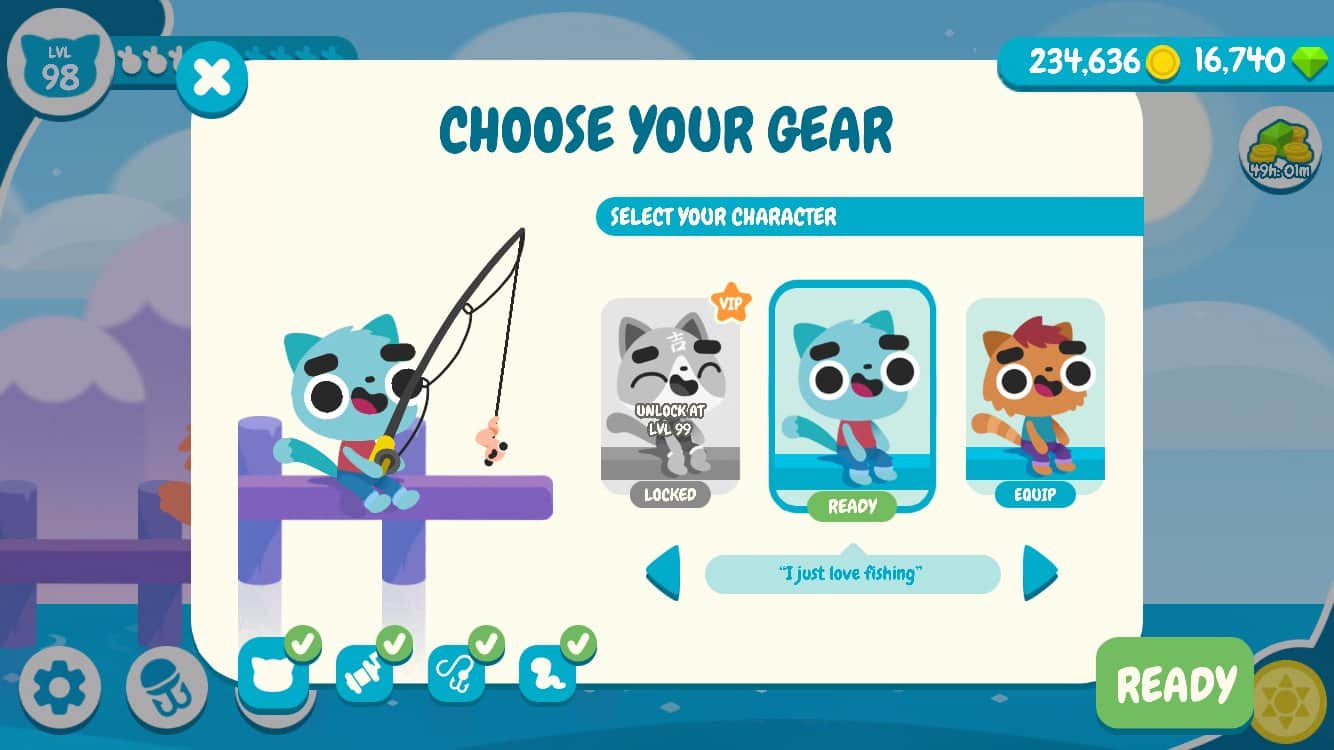 CatFish – Android için eğlenceli bir oyun, burada sevimli kediciklere balık tutmalarında yardım edeceksiniz. Bu oyunu istediğiniz zaman, boş zamanlarınızı eğlenceli bir şekilde geçirmek için oynayabilirsiniz. Oyun içinde sunulan olta takımlarından kendinize yem seçin, iğneyi suya atın ve eşsiz balıkları yakalayarak koleksiyonunuzu benzersiz türlerle genişletin. Balıklar sadece koleksiyon için gereklidir, çünkü kedicikleriniz vejeteryandır. Balığa çıkmadan önce havayı kontrol edin, çünkü bazı balık türleri belirli hava koşullarını sever. Doğru yemi seçin ve sadece koleksiyonunuz için gerekli olan balıkları yakalayın.