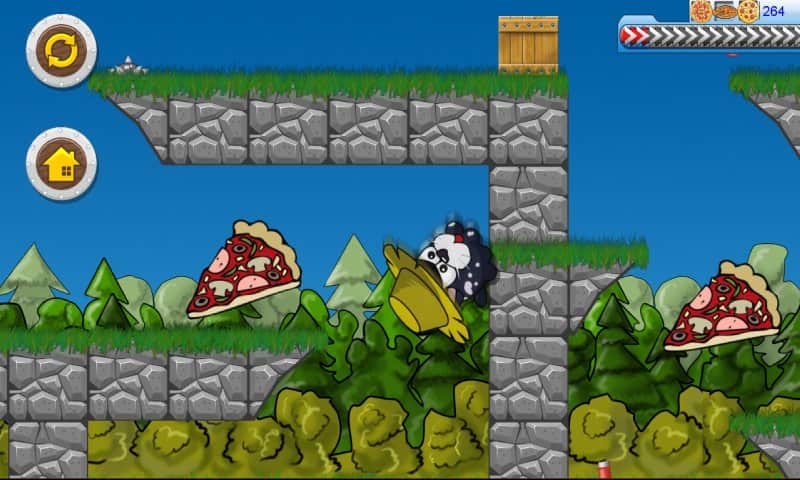 Kediler ve Pizza - Android için klasik bir arcade platform oyunu, diğer yüzlerce oyundan pek farklı değil. Sevimli bir siyah kedi olarak seviyelerde koşuyor ve pizza topluyorsunuz. Oyun iyi grafiklerle övünemez. Genellikle çocuk yaş grubuna yönelik olarak tasarlanmıştır. Bu nedenle zorluk seviyesi ve oyun mekanikleri oldukça basittir.