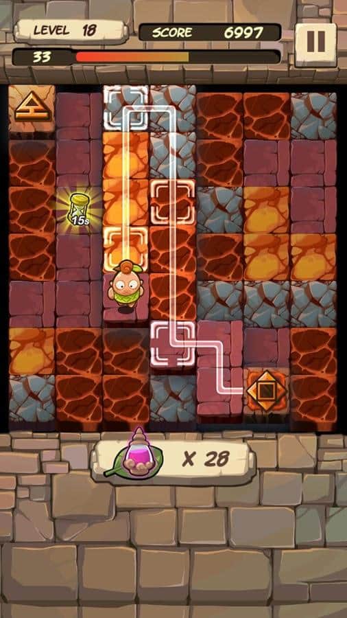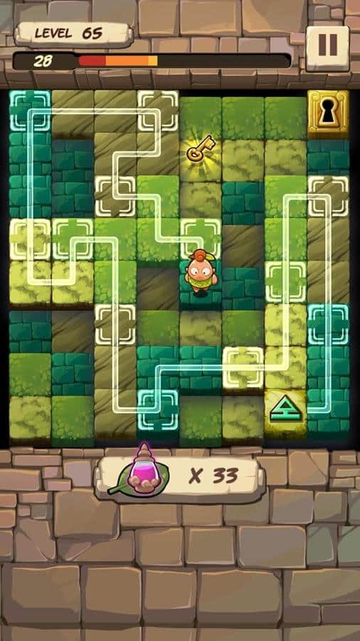 Caveboy Kaçışı - Boş zamanı kolayca geçirebileceğiniz sevimli ve heyecan verici bir bulmaca oyunudur. Ana karakter olarak oynuyoruz, antik bir insan haline geliyor, yıkık bir labirentte kalıyor ve çıkışı bulmamız gerekiyor, ancak yerleştirilen tuzaklar bunu yapmamıza izin vermeyecek. Renkli karolar sürekli yolunuza çıkacak, başlangıç noktasından sona kadar üç aynı karonun bir araya gelmesi için. İlk seviyede her şey kolay ve basit olacak, ancak ilerledikçe oyun çok daha zor hale gelecek.