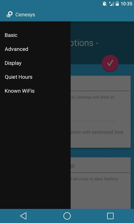 Bu uygulama, Android akıllı telefonunuzun en önemli parametrelerinden birinin korunmasında görev yapmaktadır. Evet, enerji tasarrufundan bahsediyoruz. Cenesys ile kullanıcı karmaşık ayarlarla uğraşmak zorunda kalmaz. Belirli bir pil seviyesine ulaşıldığında, program senkronizasyonu, Wi-Fi, Bluetooth, GPS ve diğer modülleri bir arada veya sadece seçtiğiniz bir kısmını otomatik olarak kapatır.