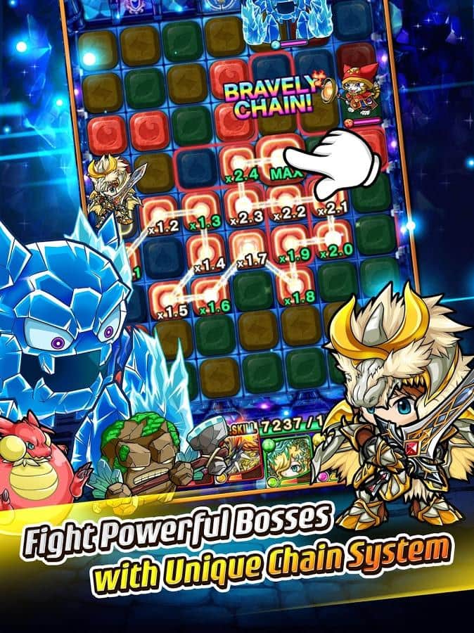 Zincir Zindanları – Android için üçlü eşleştirme unsurlarına sahip bir RPG oyunudur. Bu oyunda, cesur kahramalardan oluşan bir ekibi kontrol altına alacaksınız; bu kahramanların sayısız zindandan ve canavar ordularından geçmesi gerekecek. Kötülük güçlerine meydan okuyun ve düşmanları saldırmak için mümkün olduğunca uzun eşit blok sıraları oluşturun. Canavarlara karşı zafer kazanmak ve zindanları kötülükten temizlemek için tüm zekanızı ve mantığınızı kullanın. Cesur kahramanlar, efsanevi yaratıklar ve ejderhalardan oluşan ekibinizi toplayın, geliştirin ve güçlendirin. Yolunuzdaki tüm karoları yok edin ve savaşçılar için güvenli bir yol açın.