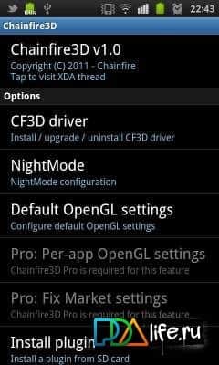 - Chainfire3D.Pro.v3.3_MM.apk.apk ve Chainfire3D_Pro_3.0.apk dosyalarını indirin, cihazınıza aktarın ve her iki dosyayı da kurun. Sonuç olarak uygulama menüsünde sadece bir kısayol olacak. Uygulama yönetiminde ise 2 program olacak, ancak aslında yalnızca birini kullanabilirsiniz. Daha eski bir versiyonu kurmazsanız "Per-app OpenGL settings" çalışmayacaktır.