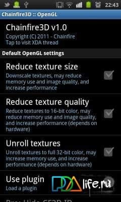 Chainfire, dokuların çözümleme yöntemlerini değiştirebilen bir Android programıdır. Program, her uygulama için ayarlarda zorunlu anti-aliasing (MSAA) etkinleştirmeye izin verir, bu da grafikleri iyileştirebilir, ancak bu özellik Tegra ile uyumlu değildir. Ayrıca, oyunların zayıf telefonlarda çalışabilmesi için çözünürlüğü ve doku kalitesini düşürmek de mümkündür.