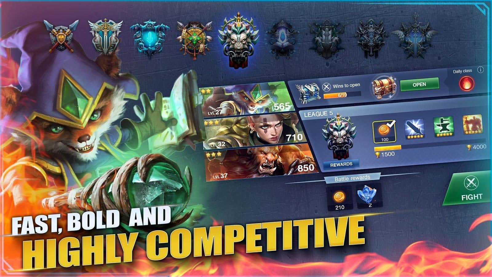Şampiyonlar Destanı – Android için ilgi çekici bir MOBA stratejisi, burada çevrimiçi savaşlarda mücadele edeceksiniz. Oyunda sunulan karakterlerden kendinize uygun bir kahraman seçin, her biri benzersiz yetenek ve becerilere sahiptir. Yenilmez bir takım oluşturun ve dünyanın dört bir yanındaki oyunculara karşı üç dakikalık PvP savaşlarında arenada savaşın. Diğer oyuncularla genel sohbet aracılığıyla iletişim kurarak yenilmez taktiğinizi geliştirin ve rakiplerinizin üssünü sizinkine ulaşmadan önce yok etmeye çalışın. Oyun boyunca kahramanlarınızı geliştirin ve değerli ödüller kazanın. Günlük turnuvalara katılın ve değerli ödüller ve bonuslar kazanın.