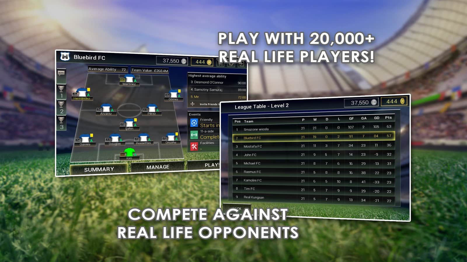 Şampiyona Menajeri: Yıldızlar – futbol takımlarını yönetme becerilerinizi sergileme şansı sunan çok oyunculu bir spor oyunudur. Bu, dünyanın en iyi oyuncularından bir futbol takımı kurup zafer için mücadele edeceğiniz bir futbol menajeridir. 440'tan fazla kulüpte oynayan oyuncular hakkında binlerce farklı veri tabanını inceleyin ve aralarından değerli olanları seçin. Pazar araştırması yapın ve yalnızca ihtiyaç duyduğunuz oyuncuları satın alın, ayrıca stadyumlarınızı yenileyin ve dünya turnuvasına katılmak için takımınızı eğitin. Taktiğinizi planlayın ve galibiyet elde etmek için oyuncuları sahada doğru şekilde yerleştirin, arkadaşlarınız ve dünya genelindeki diğer rakiplerle oynayın.