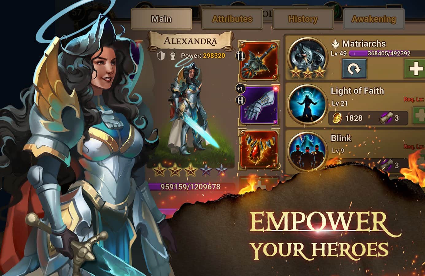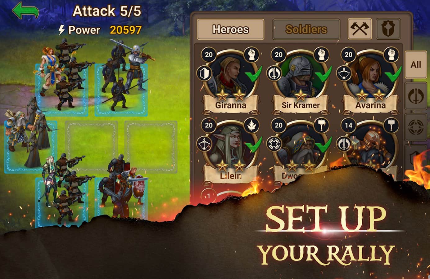 - Kahramanlarınızı ve askerlerinizi yükseltme ve geliştirme