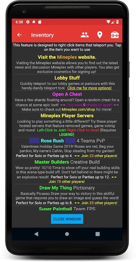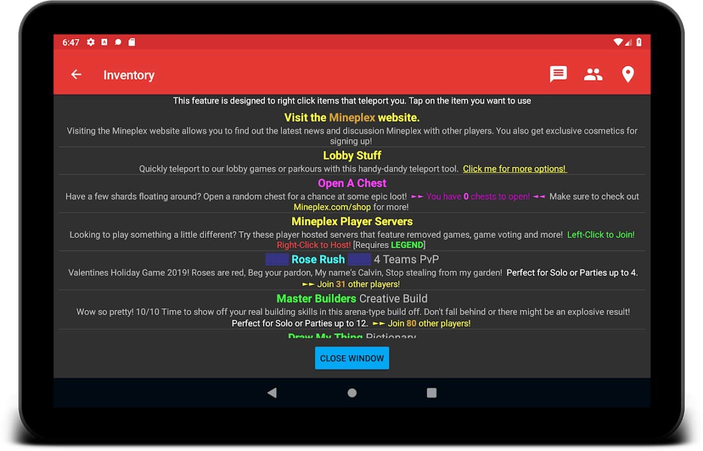 - Envanter: Envanterinizdeki nesnelere tıklayarak sunucu üzerinden teleport olun!