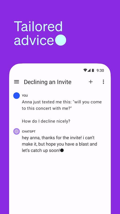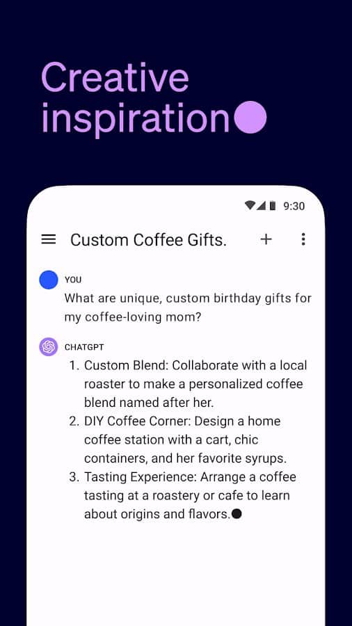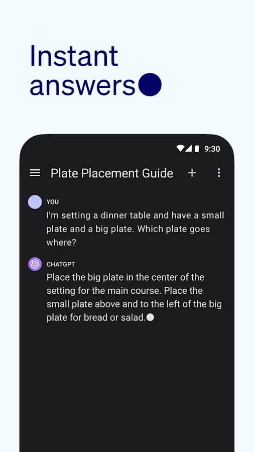 ChatGPT - aynı adı taşıyan hizmetin yaratıcılarından Android için resmi uygulama. ChatGPT ile anında yanıtlar alabilir, bireysel danışmanlık alabilir ve istediğiniz kriterlere göre her zorlukta metin üretebilirsiniz, bunun için tarayıcıda yeni bir sekme açmanıza gerek yok.