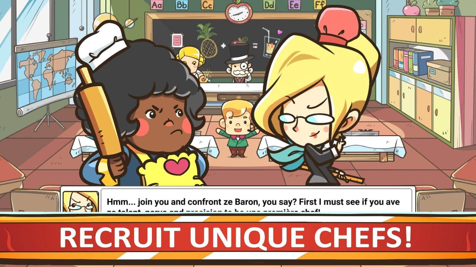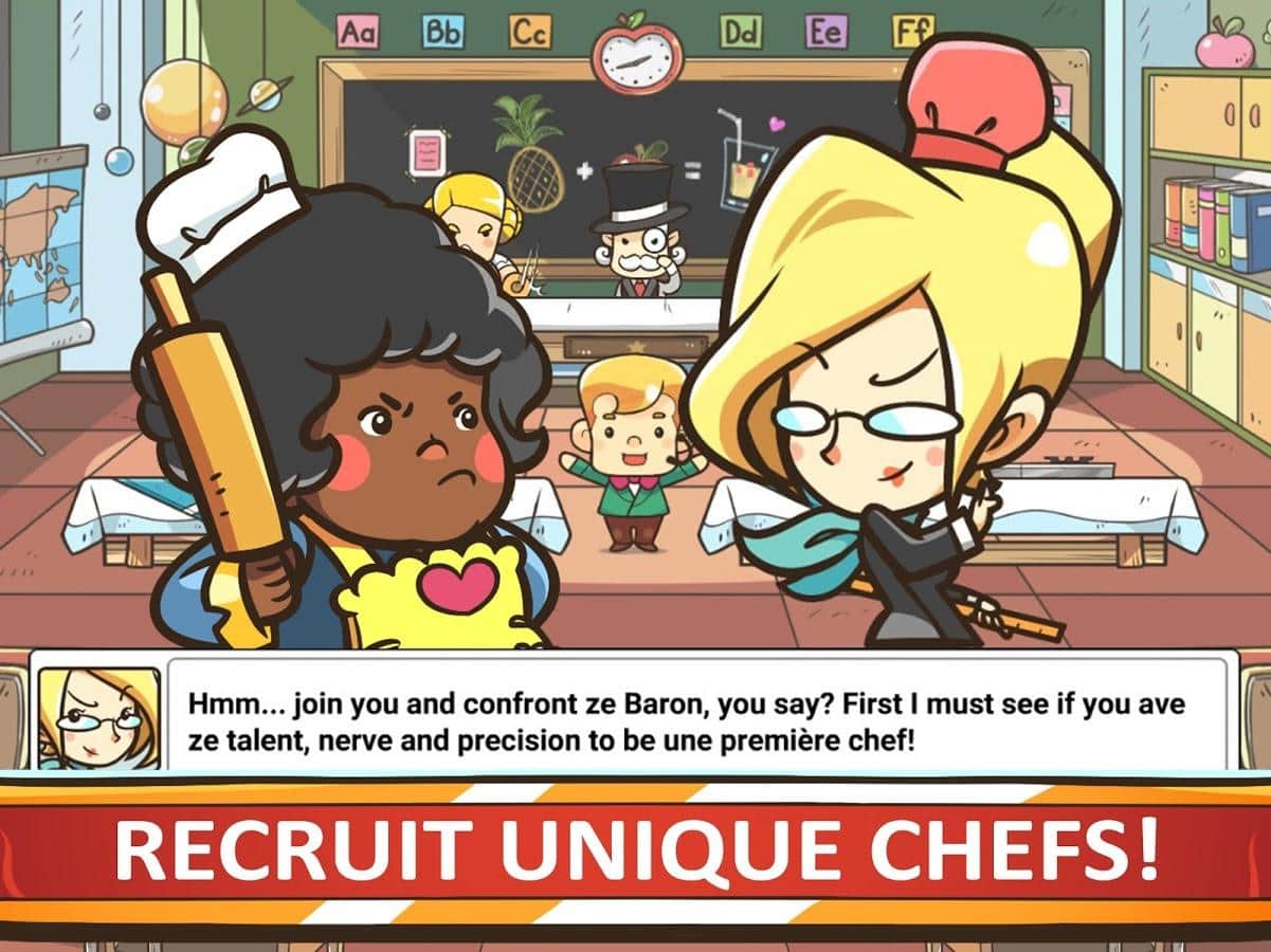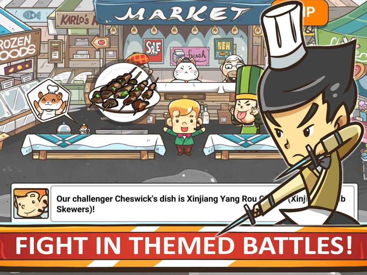 Şef Savaşları – Android için heyecan verici bir oyun, burada dünyayı gezip şık yemekler hazırlayacaksınız. Bu oyunda amacınız, mutfak savaşlarına katılmak ve dünyanın en iyi aşçılarına meydan okumaktır. Nadir malzemeler toplayın, yemek yapma becerinizi geliştirin ve yeni tarifler keşfedin. Mutfak yarışmasında tüm katılımcıları yemeklerinizle etkilemek ve jüri üyelerinin gönlünü kazanmak için mücadele edin. Mutfak yarışmasını kazanın ve tarif kitapları ile büyük bir malzeme stoğu kazanın. Dünyayı keşfetmeye devam edin ve becerilerinizi geliştirin. Önünüzde 500'den fazla şehir, 200 malzeme ve 30 eğlenceli karakter sizi bekliyor.