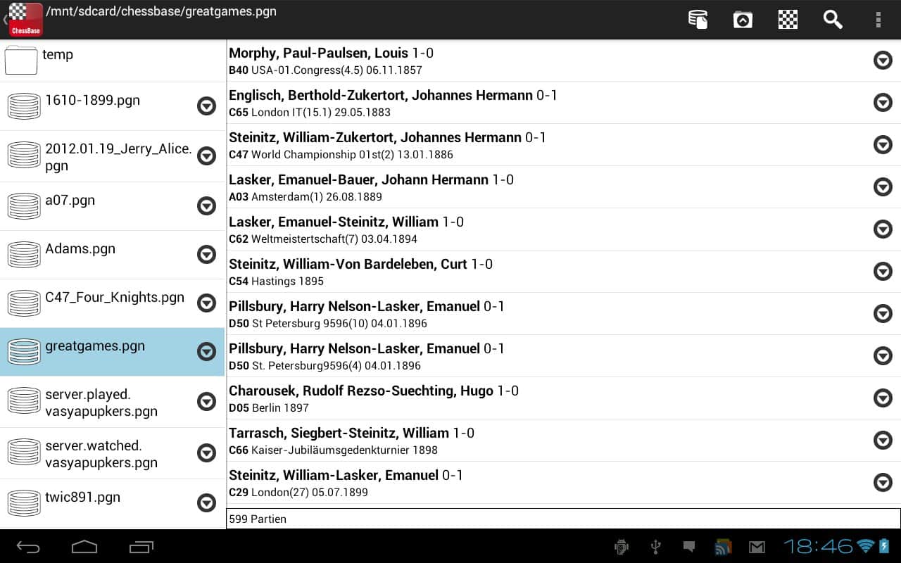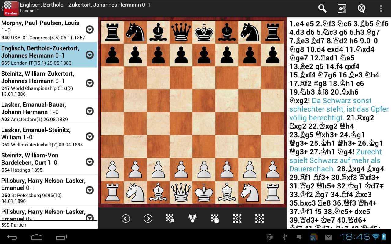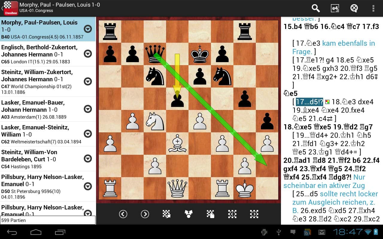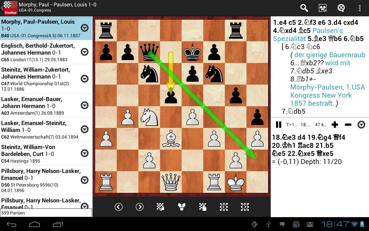 Satranç, çok eski masa stratejilerinden biridir ve köklü geçmişine rağmen güncelliğini korumakla kalmayıp, belki de daha fazla popülarite kazanmıştır. Satranç, tüm oyun platformlarında, özellikle mobil cihazlarda oldukça yaygın olarak temsil edilmektedir. Bu alanda oldukça sıradışı projeler de bulunmaktadır. ChessBase Online adlı uygulama, yalnızca en ünlü büyük ustaların dikkat çekici ve tanınmış karşılaşmalarıyla tanışmanıza yardımcı olmakla kalmayıp, oyunun temellerini öğrenmenizi sağlayacak en kapsamlı ve detaylı satranç oyunları veritabanlarından biridir. 5 milyondan fazla oyun, 270 binden fazla oyuncunun oyunları, detaylı yorumlar ve açıklamalar ile birlikte sunulacak ve Rusça dilinin bulunması uygulamayı kullanmayı oldukça kolaylaştıracaktır.