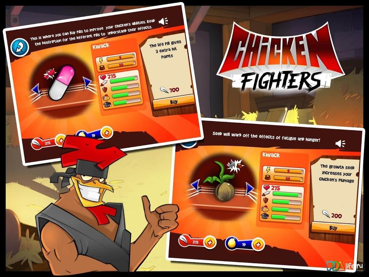 Tavuk Dövüşçüleri – çok oyunculu dövüş oyununda arenada en inanılmaz dövüş tavuğunu yetiştirin. Burada, dövüşçünüzün gelişimini yumurtadan tam bir horoz olana kadar izleme fırsatına sahip olacaksınız, karakteristik özellikleri seçme ve dövüş sanatındaki yönelimi kendiniz belirleyebilirsiniz. Horozu arenaya çıkarmadan önce onu mini oyunlarda («Dövüşçü Parkuru» ve «Solucan Avı») eğitin. Ayrıca, oyunda dövüş horozu için yüzlerce ekipman kombinasyonu bulunduğunu belirtmek gerekir. «Ölüm Dövüşü» modunda kümes elitine karşı mücadele ederken dikkatli olun, yenilgi durumunda dövüşçünüz ölebilir. Gagayı kullanın, kavrayışlar ve ninja uppercut'ları uygulayarak rakiplerin tüylerini yolun. Büyük zaferler !