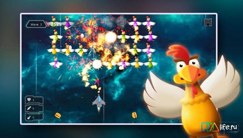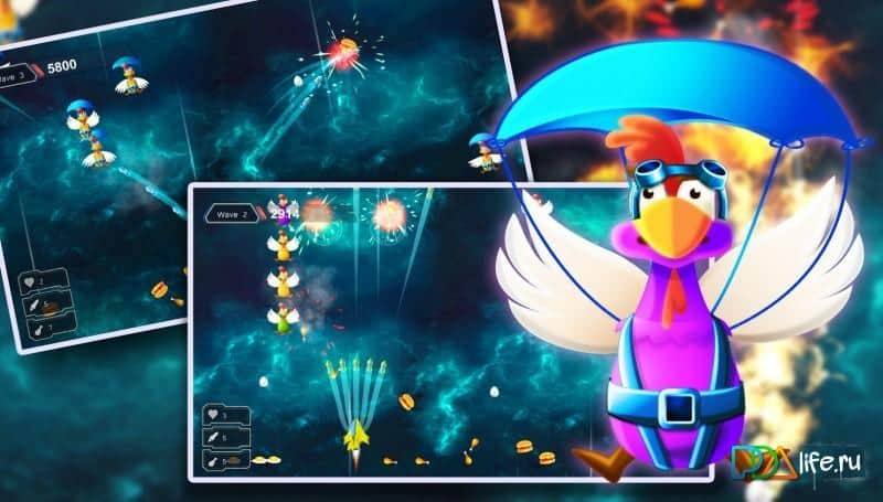 Tavuk Vuruşu - Uzay Savaşçısı – uzaylı tavuklar tarafından saldırıya uğrayan küçük bir uzay gemisinin pilotu olun. Gezegenimize uzay tavuklarının tehdidi yaklaşıyor, göreviniz düşmanların savunmanızı aşmasına izin vermemek. Uzay geminize düşen uzay yumurtalarıyla dolu epik tavuk savaşlarına hazırlanın. Kurnaz düşmanlarla savaşın ve onları güçlü silahlarla yok edin, geminizin düşmesini engelleyin. Geminizi sağa ve sola hareket ettirin, size çarpan uzay yumurtalarından kaçınarak manevra yapın, çünkü bunlar geminize çarparsa yaşamınızı alabilir. Özel bonusları toplayın ve geminizi ya geliştirerek ya da yeni bir tane satın alarak güçlendirin.