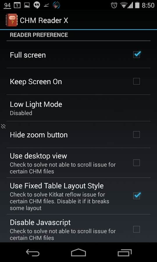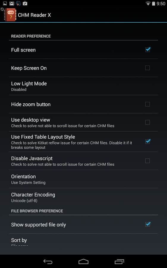 - Sayfalar arasında hareket etmek için Ses düğmelerinin kullanımı desteği, Gezginde CHM/HTML dosyalarıyla ilişkilendirme. (Sadece bazı dosya yöneticileriyle çalışır, örneğin: OI File manager)