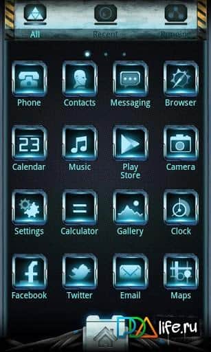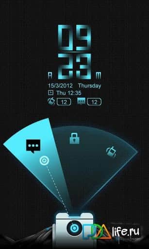 Seçim GO Kilit Teması – ZT.art geliştiricisinden GO Launcher EX için ilginç bir Android kilitleme widget'ıdır, indigo rengi neon ışığı ile. Tarih ve saat, telefon ve mesajlar ekranın üst kısmında görüntülenir, tüm uygulama simgeleri aydınlatmalı olarak yapılmıştır. Kilidi açmak için ekranın altındaki düğmeye basmanız ve gerekli uygulamayı seçmeniz gerekir.