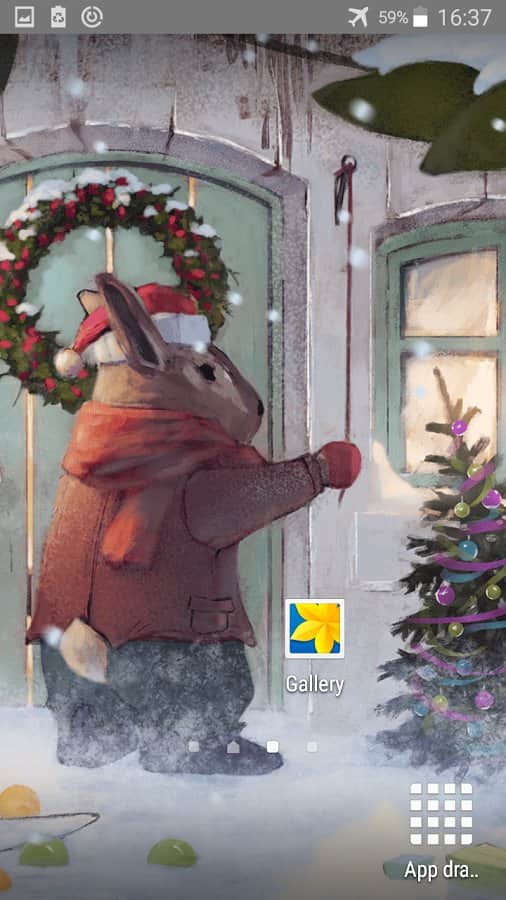 Noel hediyeleri Canlı Duvar Kağıdı – Android için harika canlı duvar kağıtları, size Noel ruhunu verecek. Bu duvar kağıtları sizi kış ormanına götürecek, burada bir baba tavşanın çocukları için bir çam ağacı ve hediyeler getirdiğini göreceksiniz. Bu duvar kağıtlarının kutlama atmosferine dalın ve neşeli çocukların babalarını karşılama anını izleyin. Duvar kağıtları sizi harika grafiklerle memnun edecek, olayların tüm resmini görebileceksiniz. Ayarlara gidin ve kar ve parlayan çelenk gibi çeşitli efektler ekleyin.