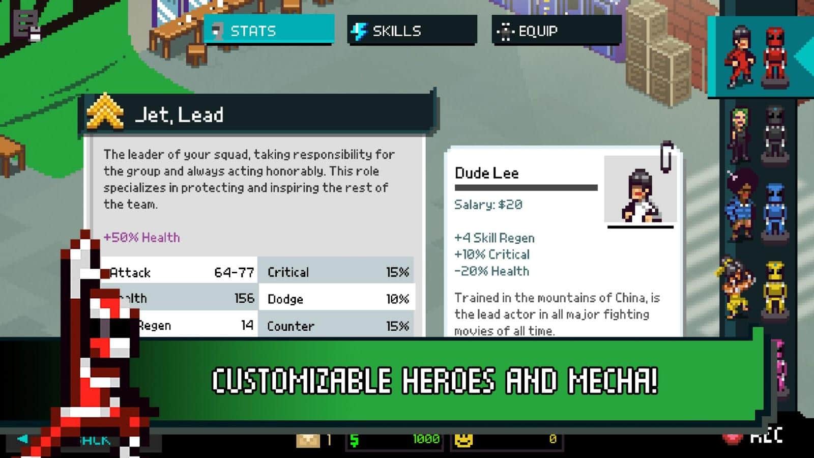 Chroma Squad – Android için taktiksel bir RPG'dir, burada bir kaskader ekibini yöneteceksiniz. Bu oyunda, işlerini bırakmaya ve kendi televizyon gösterilerini yaratmaya karar veren beş kaskaderi kontrol altına alacaksınız. Bu oyundaki göreviniz, kartondan kahramanların benzersiz kostümlerini ve silahlarını oluşturmak ve düşmanlara saldırmaktır. Kamera çalışmaya başladığında, saldırılarınızı sergilemeniz ve her kahramanın benzersiz yeteneklerine bağlı olarak bunları birleştirmeniz gerekecek. Düşmanlarla sıra tabanlı savaşlara katılın ve tüm beceri ve yeteneklerinizi gösterin. Kombinasyon darbeleri yapın, çeşitli silahlar kullanın ve benzersiz nesneler yaratın.