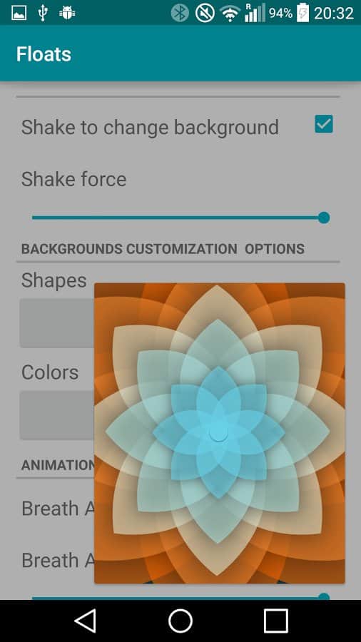 Chrooma Floats LWP – Android telefonlarınız ve tabletleriniz için güzel ve büyüleyici canlı duvar kağıtları. Duvar kağıdını telefonunuza kurduğunuzda, sürekli değişen ve bir formdan diğerine geçen soyut bir görüntü elde edeceksiniz. Animasyonlu canlı duvar kağıtları, birbirleriyle etkileşime giren ve büyüleyici bir etki yaratan geniş bir renk paletini bir araya getiriyor. Duvar kağıtları paralaks efektlerine sahiptir ve pilinizin küçük bir yüzdesini tüketir. Ekranınızda 20'den fazla farklı şekli gözlemleyin ve güzel rahatlatıcı etkisinin tadını çıkarın.