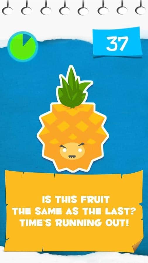 Bu Hangi Meyve!? - ünlü Gameloft grubundan Android için bu eğlenceli arcade oyunu. Bu oyunda hafızanızı ve reflekslerinizi test etmeniz gerekecek. Oyunun adı kendini açıklıyor, size gösterilen meyvelerin adını tahmin etmeniz gerekiyor. Ama her şey göründüğü kadar basit değil, bu oyunu oynadıkça cevap verme süreniz azalacak ve meyve sayısı giderek artacak. Bu oyunu oynayın ve başka hiçbir oyuncunun geçemeyeceği puan rekorları kırın.