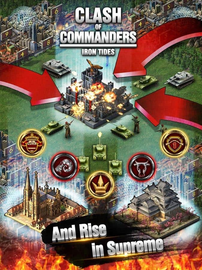 Komutanların Çatışması - Demir Dalgalar, Android için bir askeri strateji oyunudur; burada tüm dünyayı fethetmeniz gerekecek. Şehrinizi inşa edin ve düşmanlardan koruyun. Devasa bir ordu toplayın ve onu yönetmesi için İkinci Dünya Savaşı döneminin ünlü bir generalini işe alın; bu general ordunuzu zaferlere götürecek. Müttefikleri yanınıza çağırın ve onlarla yenilmez ittifaklar kurun, diğer oyuncuların saldırılarına karşı durun. Şehrinizi ele geçirilemez bir kaleye dönüştürün; hiçbir düşman onu alamaz. Deneyimli bir komutan olun ve ordunuzu savaşa yönlendirmek için akıllıca manevralar ve iyi planlanmış taktikler uygulayın; birliklerinizin sayısını ve askeri teçhizatın varlığını göz önünde bulundurun.