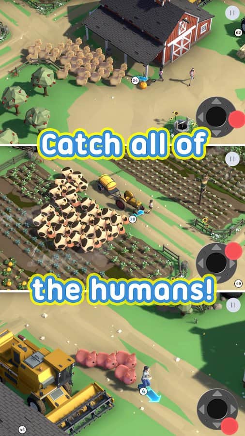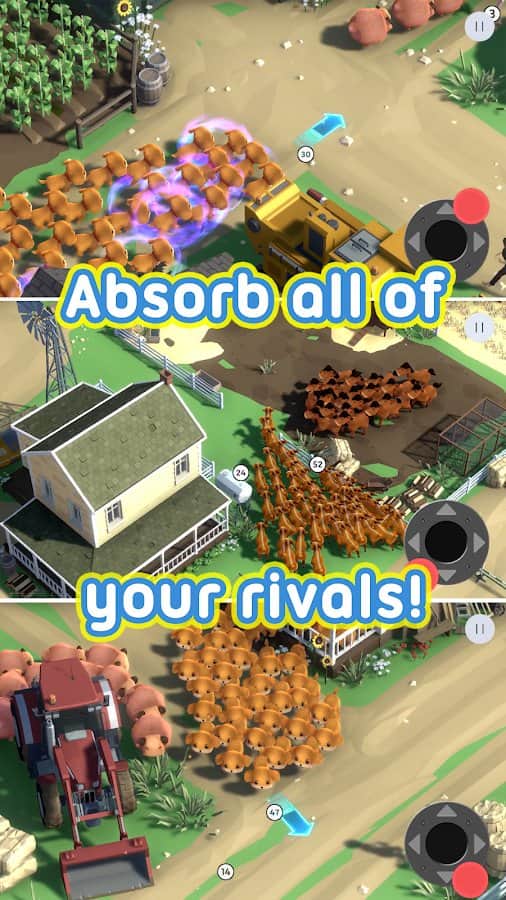 Modern ve çok eğlenceli bir oyun olan «Kalabalıkların Çatışması», oyuncuyu bir çiftliğe taşıyor! Görev net ama kolay değil: kendi türünüzden hayvanlarla gruplar ve ardından kalabalıklar oluşturun ve oyunu geçerek büyüyün. Uygulamada alpaka, at, tavuk ve daha birçok gibi 22 hayvan türü mevcut! Hayatta kalmak için düşmanları yok etmek, onları yiyerek en güçlü sürü haline gelmek gerekiyor. Tüm grafikler köşeli, en sevilen çizim türlerinden birinde hazırlanmış. Mekânların ve yolların detayları özenle çizilmiş. Müzik oldukça rahatlatıcı, bu yüzden oyun size sadece keyif verecek!