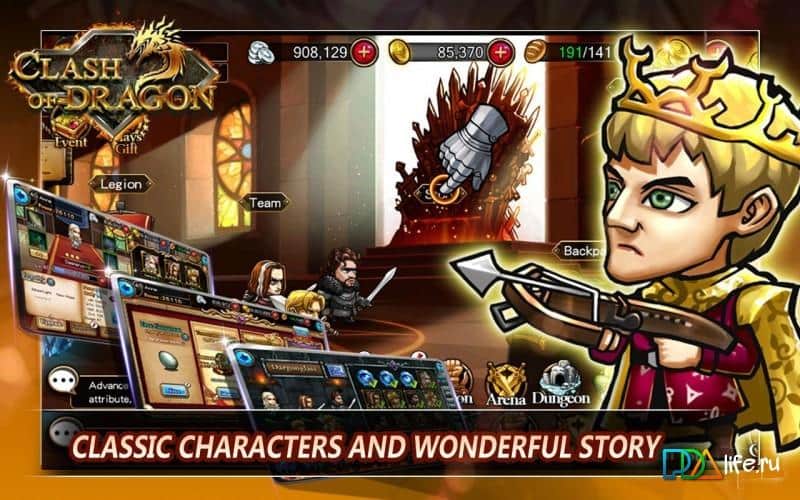 Ejderha Çatışması – Android için bir RPG'dir, burada krallığınızı kötü güçlerin ve karanlığın istilasından korumanız gerekiyor. Cesur kahramanlardan oluşan ekibinizi toplayın ve krallıktaki güç için güçlü lordlarla ve düşmanlarla epik çatışmalara katılın. Tüm krallığı dolaşın ve çeşitli yeteneklere sahip yeni kahramanları keşfedin. Canavarlara ve güçlü patronlara karşı savaşarak çeşitli görevleri ve misyonları tamamlayın. Her kahramanın yeteneklerinden yararlanın, sayısız savaşta ve çatışmada onları kullanın ve savaşçılarınızı ek özellikler ve yeteneklerle geliştirin.