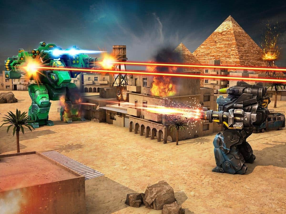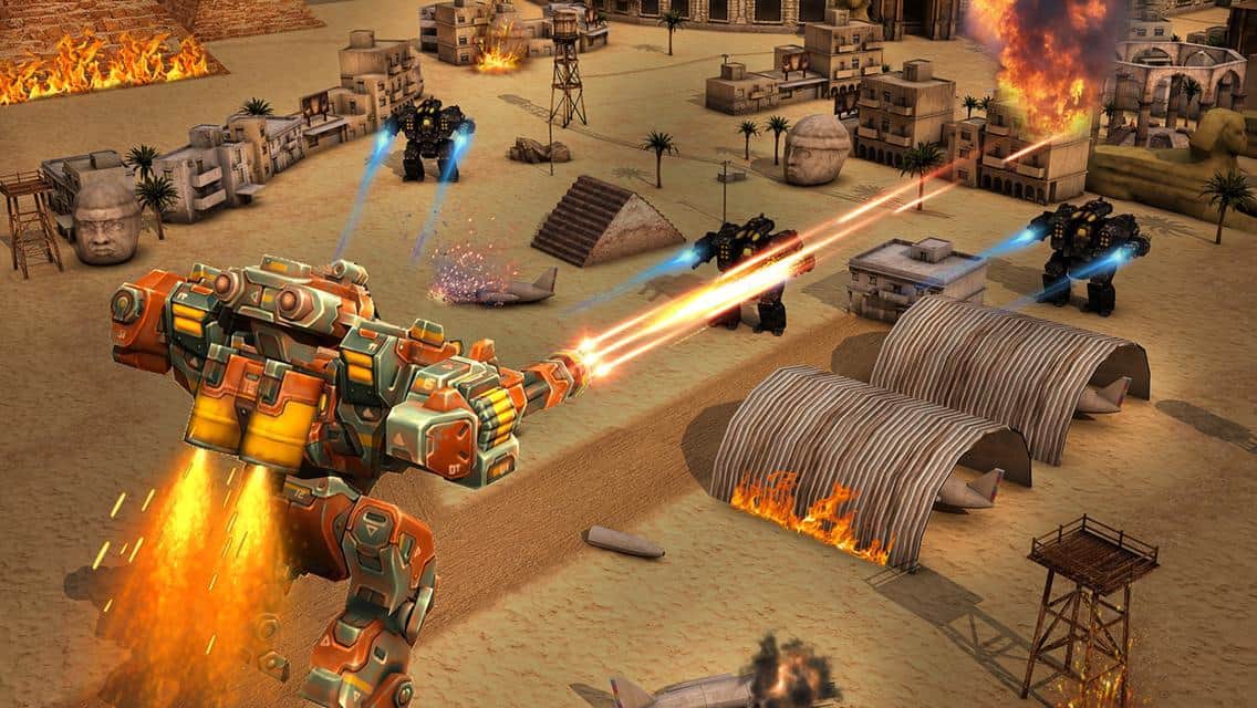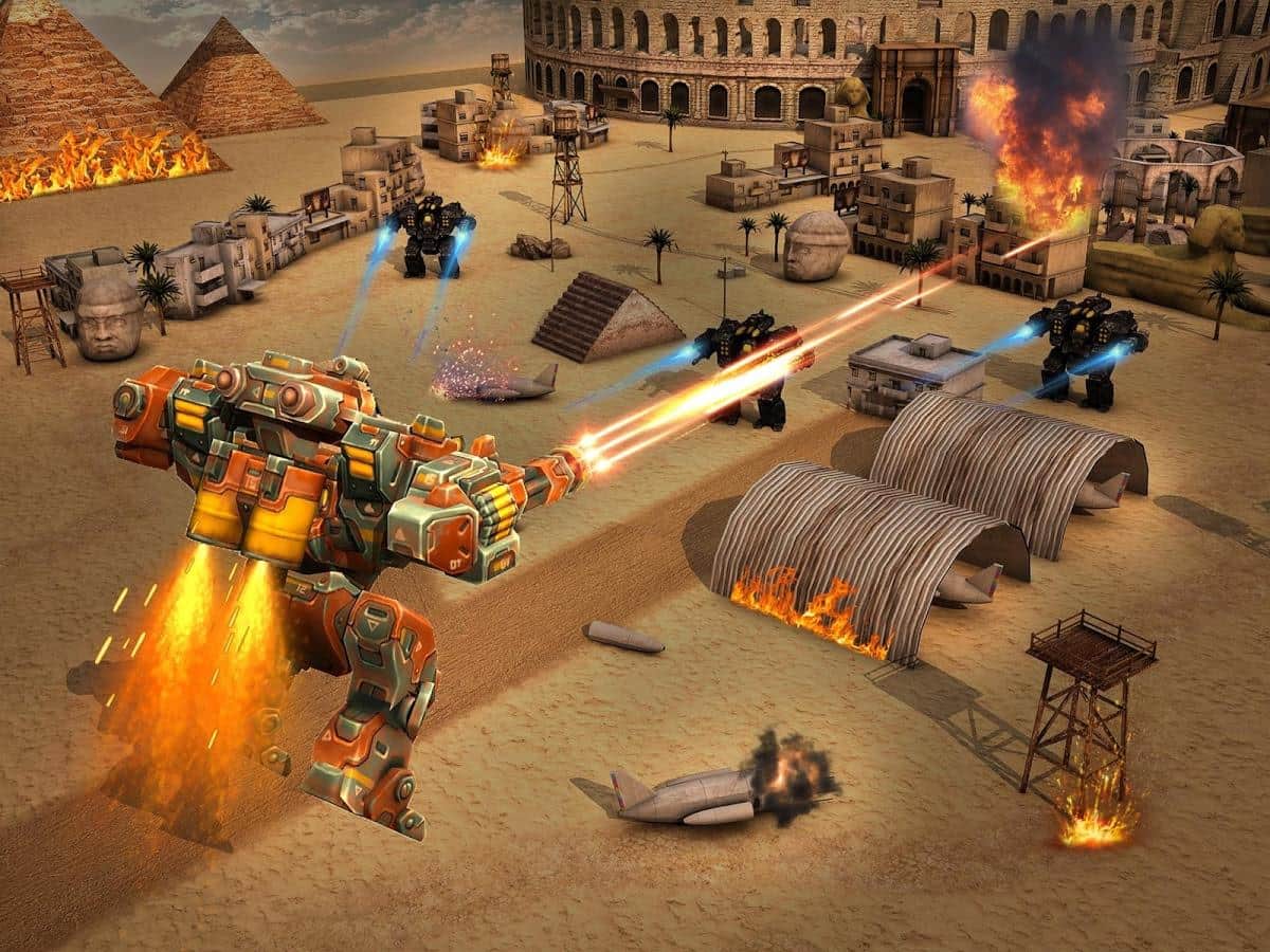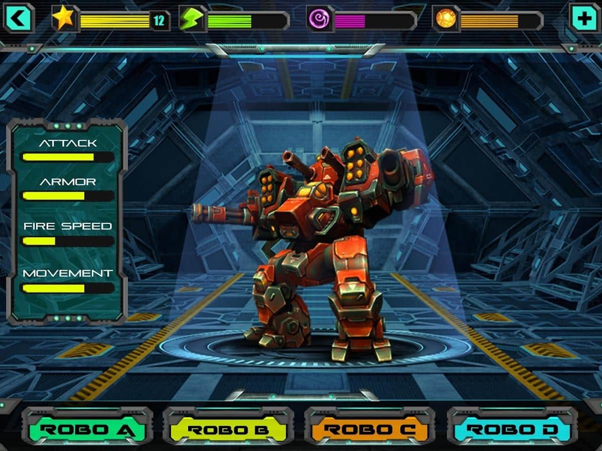 Mekanik Robotların Çatışması – android için bir oyun, burada savaş robotlarıyla uzaylıların istila girişimini durdurmalısınız. Bu oyun sizi yakın bir geleceğe götürecek, burada insanlık gezegenlerini korumak için kontrol edebilecekleri savaş robotları oluşturdu. Robotlardan birini kontrol altına alın ve toprağınızı ele geçirilmekten koruyun. Oyunun çeşitli lokasyonlarında robotu hareket ettirin ve düşmanlara toplardan ve roket rampalarından sürekli ateş edin. Oyunun sunduğu tüm görevleri yerine getirin ve benzersiz yeteneklere ve silahlara sahip yeni robotlar edinin. Robotların teknik özelliklerini hangarda geliştirin ve savaş makinelerinizi iyileştirin.