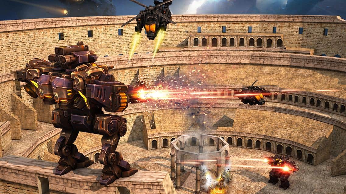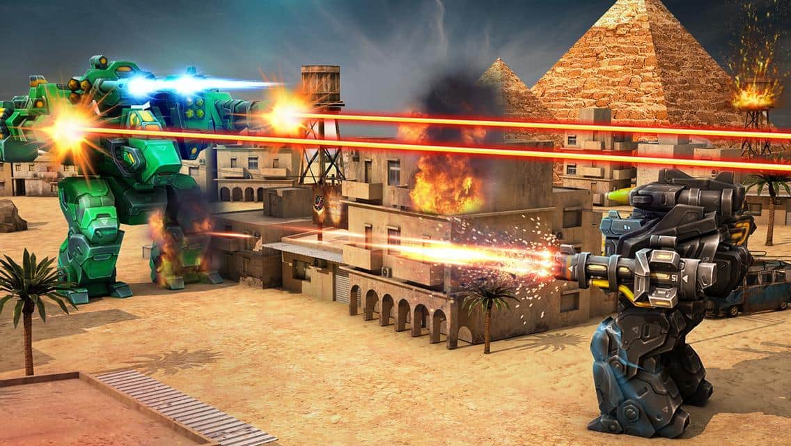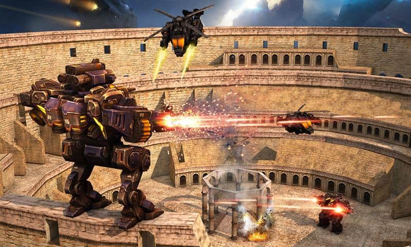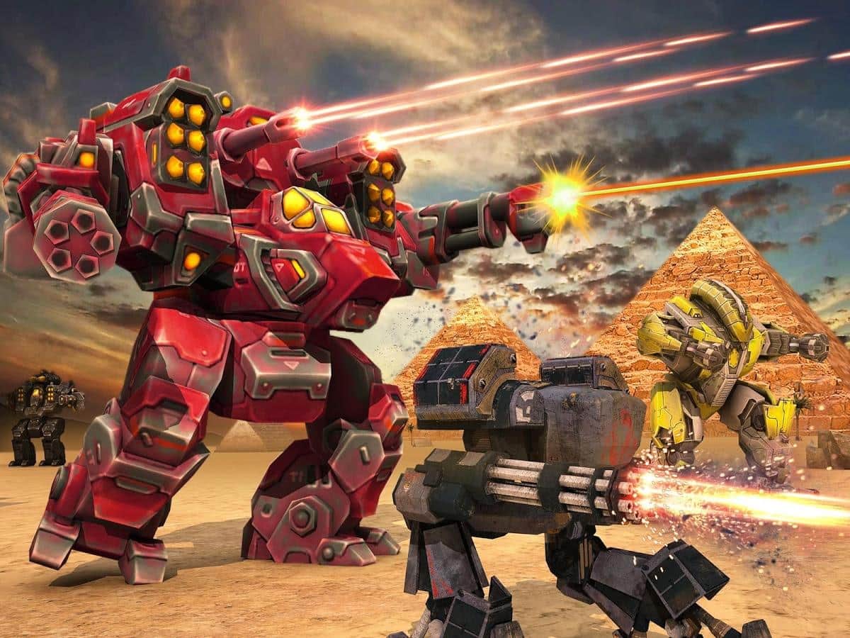 Mekanik Robotların Çatışması – android için bir oyun, burada savaş robotlarıyla uzaylıların istila girişimini durdurmalısınız. Bu oyun sizi yakın bir geleceğe götürecek, burada insanlık gezegenlerini korumak için kontrol edebilecekleri savaş robotları oluşturdu. Robotlardan birini kontrol altına alın ve toprağınızı ele geçirilmekten koruyun. Oyunun çeşitli lokasyonlarında robotu hareket ettirin ve düşmanlara toplardan ve roket rampalarından sürekli ateş edin. Oyunun sunduğu tüm görevleri yerine getirin ve benzersiz yeteneklere ve silahlara sahip yeni robotlar edinin. Robotların teknik özelliklerini hangarda geliştirin ve savaş makinelerinizi iyileştirin.