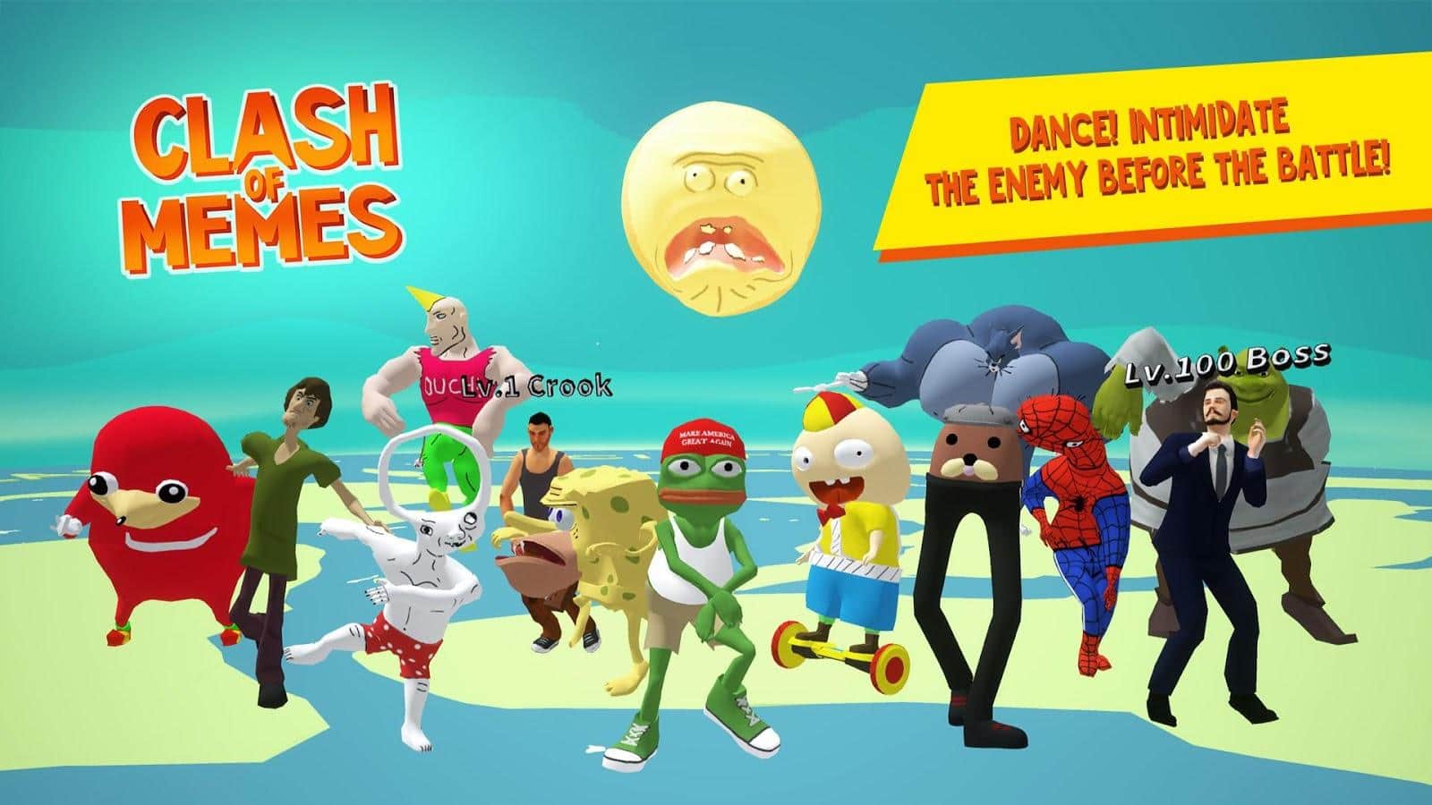 Meme'lerin Çatışması: Bir Kavga Krallığı – Android için heyecan verici bir oyun, burada meme'leri kontrol edeceksiniz. Ünlü meme'leri kontrol altına alın ve ünlü katılımcılar arasında kendinize özgü bir dövüşe katılın. Düz yerin toplumunu korumak için savaşın ve dev bir ananaslı pizzayı seçin. Bu oyun, oyuncuları çeşitli meme'lerle, farklı danslarla ve ek içeriklerle mutlu edecek. Karşı güçlü bir rakibe karşı dövüşçünüzü kullanın ve güçlü ve yıkıcı darbeler uygulayın. Bu oyunda karmaşık kombinasyonları ezberlemek zorunda kalmayacaksınız, sadece tuşlara basmanız yeterli. Rakiplerinizi yenin ve dövüş başlamadan önce rakibinizi korkutmak için beklerken dans edin.