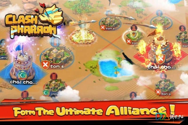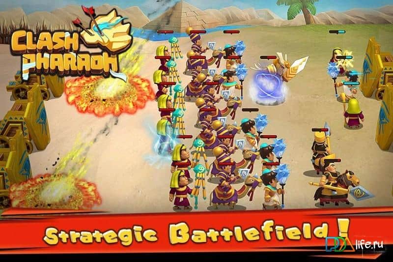 Çatışma Firavun - Eski Mısır'da geçen bir SLG oyunudur; firavun rolünde devletinizi yönetmek sizin görevinizdir ve bunun tüm sonuçlarıyla yüzleşirsiniz. Bu arada, geliştiriciler oyuncuların klanlar oluşturmasına ve çevrimiçi savaşlara katılmasına izin vermek için çevrimiçi strateji unsurları eklemeyi tercih etmiştir.