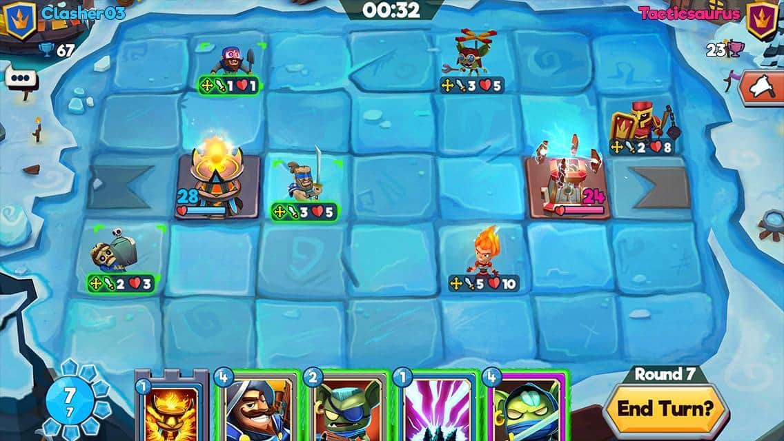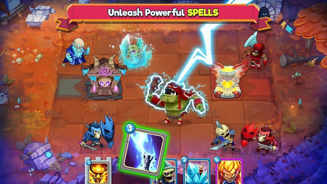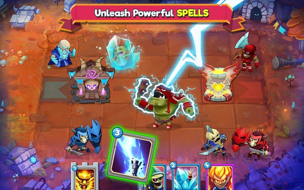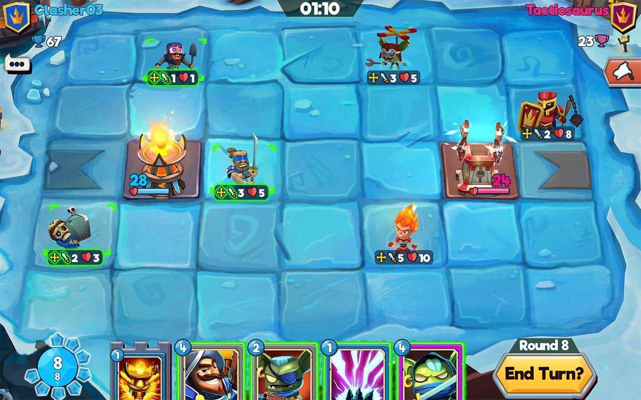 Çatışma Taktikleri – güçlü kahramalardan oluşan benzersiz kart koleksiyonunuzu toplayın. Bu oyunda ana göreviniz, kahramanlarınızdan oluşan ekibinizi toplamak ve düşman kulesini yıkmaktır. Oyunda tüm zihinsel ve taktiksel becerilerinizi kullanın ve yenilmez bir strateji geliştirin. Düşmanların hedefi yok etmek olacağı için kulenizi korumayı da unutmayın. Kahramanlarınızın yıkıcı yeteneklerini kullanın ve düşmanı hazırlıksız yakalamak için büyü ve tuzaklardan faydalanın. Sıralı savaşlarda galip gelin ve büyük hazine sandıkları kazanın.