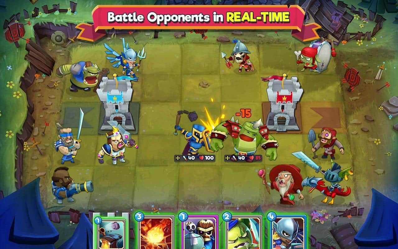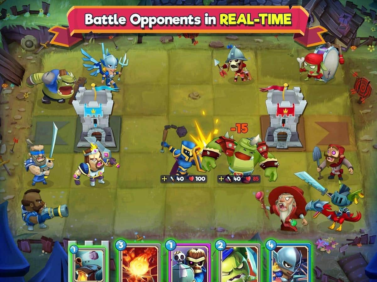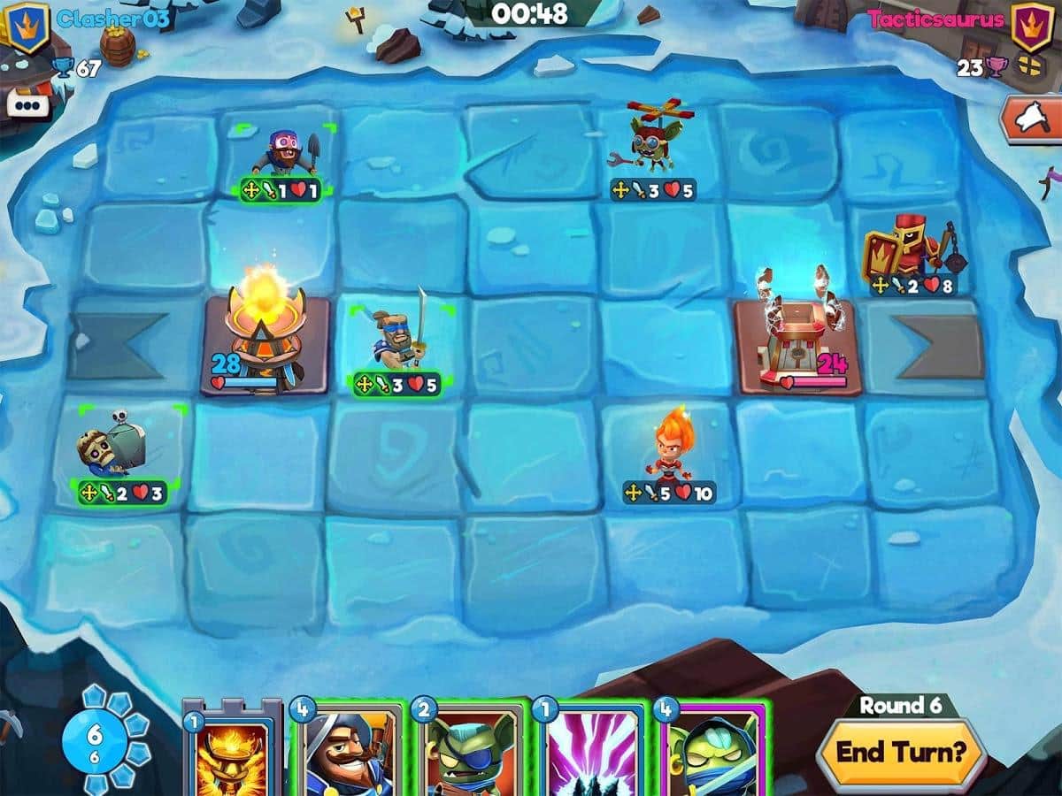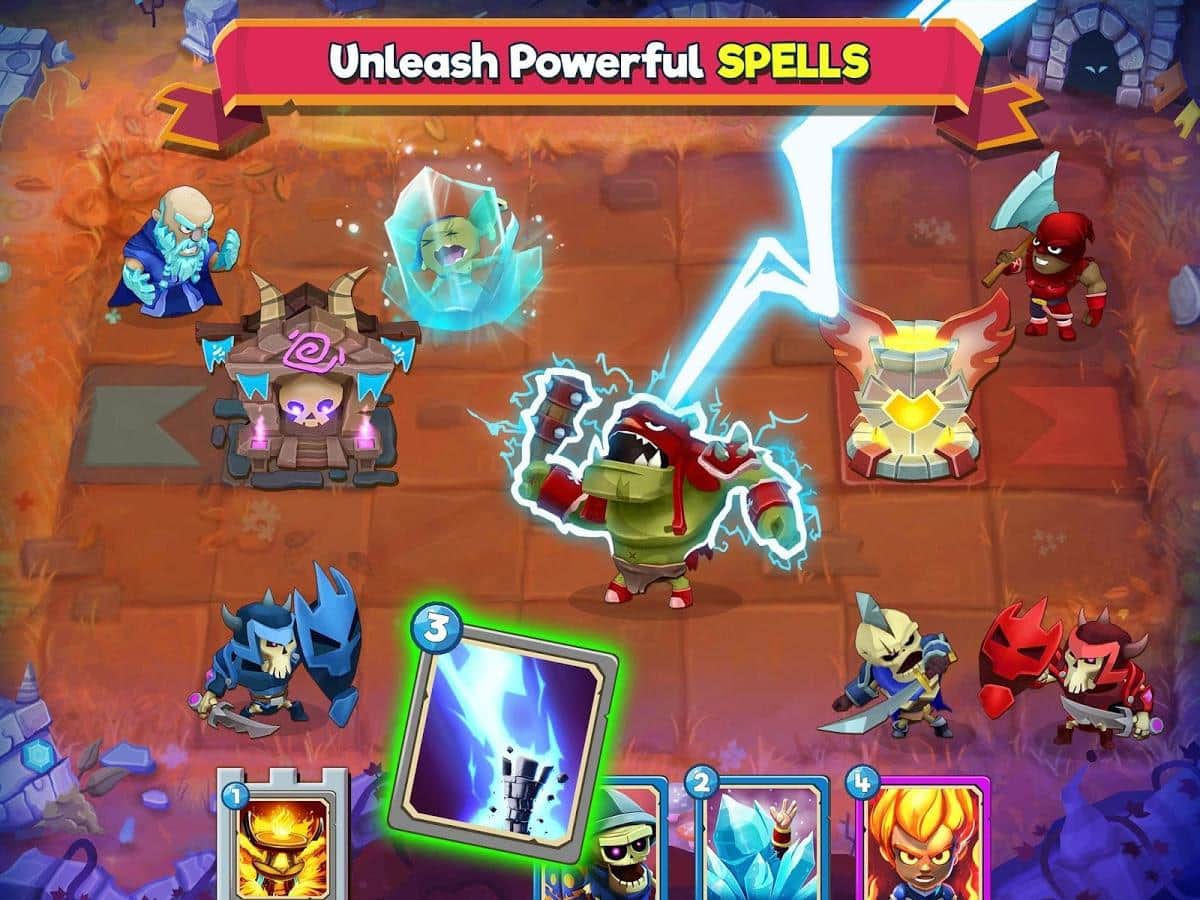 Çatışma Taktikleri – güçlü kahramalardan oluşan benzersiz kart koleksiyonunuzu toplayın. Bu oyunda ana göreviniz, kahramanlarınızdan oluşan ekibinizi toplamak ve düşman kulesini yıkmaktır. Oyunda tüm zihinsel ve taktiksel becerilerinizi kullanın ve yenilmez bir strateji geliştirin. Düşmanların hedefi yok etmek olacağı için kulenizi korumayı da unutmayın. Kahramanlarınızın yıkıcı yeteneklerini kullanın ve düşmanı hazırlıksız yakalamak için büyü ve tuzaklardan faydalanın. Sıralı savaşlarda galip gelin ve büyük hazine sandıkları kazanın.