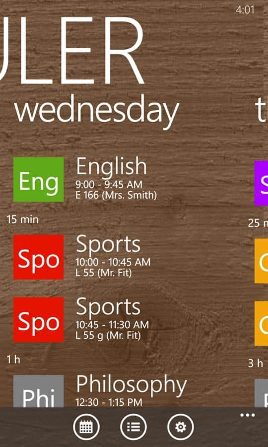 Ders Programı - ders, kurs, sınav ve ev işleri programlaması için oluşturulmuş bir Windows Phone uygulamasıdır. Her göreve kendine özgü bir renk atama imkanı ile yararlanın. Artık bu uygulama sayesinde derslerinizi asla unutmayacaksınız, sadece bir hatırlatıcı ayarlayın. Ayrıca her hatırlatıcıyı fotoğraf, sesli ve metin notları ile donatabilirsiniz.