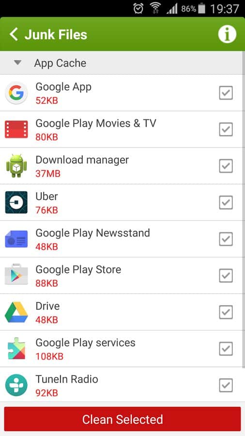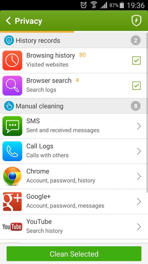 Temizleyici - Akıllı telefonun içine baktığınızda yine çöp dağları mı var? Bu sorun değil, çünkü bu uygulama ile tüm gereksiz dosyaları iki dakikada temizleyebilirsiniz. Ama endişelenmeyin, sizin için önemli verileri silmeyecek, cihazınızdaki gereksizlikleri değerlendirebilir ve bu temizleyicinin etkileyebileceği klasörleri veya uygulamaları belirleyebilirsiniz. Her şey tamamen manuel olarak ayarlanabilir ve aynı zamanda neredeyse hiç yer ve kaynak kaplamaz.