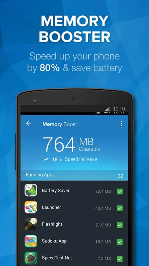 Temizleyici Booster - Cihazınızın performansını artırın ve temizleyin. Bu uygulama, uzun zamandır unuttuğunuz veya diğer uygulamaları kaldırdıktan sonra kalan dosyaları temizleyecektir. Akılsızca her şeyi silmeyecek, hangi dosyaların gerekli olmadığını sizden soracak. Ayrıca, standart temizleyiciyi bununla değiştirerek, akıllı telefonunuzun belleğini aktif uygulamalardan daha titiz bir şekilde temizleyebilirsiniz. Ayrıca burada oyun hızlandırma modu da mevcut. Çok olmasa da, yine de oyunun başlatılması için belleği optimize eder.