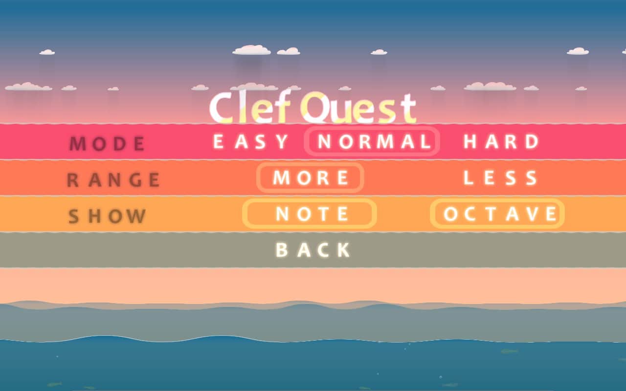 ClefQuest – Android için bir müzik oyunu, burada notaları oyun oynayarak öğreneceksiniz. Notaları sizin için basit ve anlaşılır bir modda öğrenin, onları ezberleyin ve hafızanızı ve işitmenizi test edin. Bu oyunu, notaları öğrenerek veya sadece boş zamanınızı geçirerek oynayabilirsiniz. Oyun, sizi orijinal oyun mekaniği ve birkaç oyun modu ile mutlu edecek. Oyun sırasında, karakterinizi notalar arasında yukarı veya aşağı hareket ettirerek kendinize özgü bir ses dizisi oluşturun. Her nota sizi benzersiz bir taktikle mutlu edecek ve notaları isimlerine veya işitme yoluyla bulabileceksiniz. Eğlenceli bir şekilde boş zamanınızı değerlendirin ve yedi notayı öğrenin.