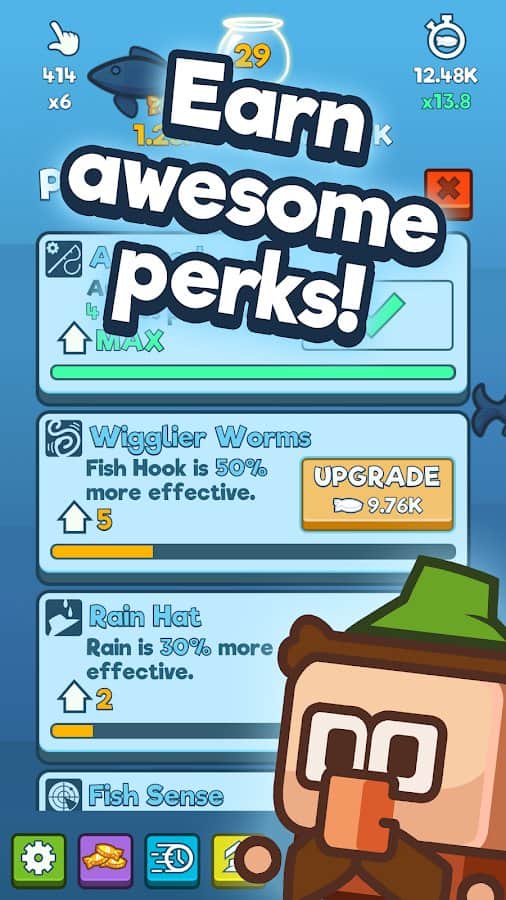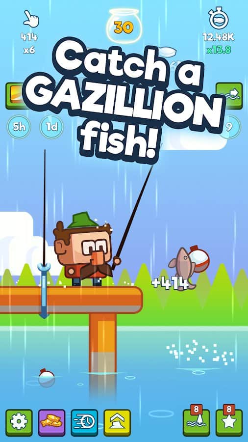 Tıklama Oyunları: Balık Tutmak İçin Dokun – Android'de, farklı su kaynaklarında balık tutacağınız heyecan verici bir tıklama oyunudur. Bu oyundaki ana göreviniz, telefon ekranına mümkün olduğunca sık dokunmak ve boş zamanınızı eğlenceli bir şekilde geçirmektir. Mümkün olduğunca çok balık avlayın ve balık tutma ekipmanlarınızı geliştirme fırsatı elde edin. Ne kadar çok balık yakalarsanız, o kadar çok imkanınız olacak, hatta süreci otomatikleştirebilirsiniz. Çeşitli mantık bulmacalarını çözün ve daha fazla balık tutabileceğiniz yeni su kaynaklarına erişim kazanın. Bonuslar ve ödüller kazanın ve canlı grafikleriyle keyfini çıkarın.