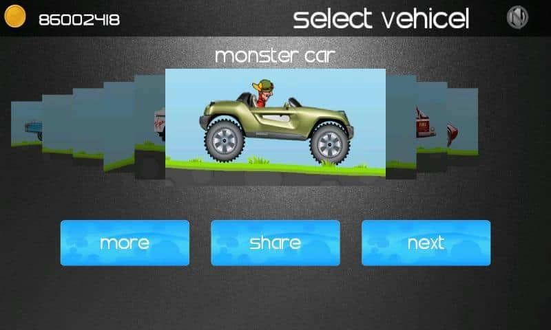 Tepe Tırmanışı - basit ve sıradan oyun mekaniği ile en küçük oyuncuların bile kavrayabileceği sezgisel kontrol sistemine sahip harika bir sonsuz yarış arcade oyunudur. Sonsuz pistte yarışıyoruz, bonuslar ve yakıt topluyoruz, yoksa uzaklara gidemeyeceksiniz. Her zaman benzin seviyesine dikkat edin, eğer biterse araç hız kaybetmeye başlayacak ve tamamen durana kadar böyle devam edecek, ardından kaybedeceksiniz. Yüksek hızlarda çeşitli numaralar yapabilirsiniz, özellikle rampalara çarptığınızda. Seçim için dokuz araç sunuluyor, bunlar arasında motosiklet ve canavara benzer bir araba da var.