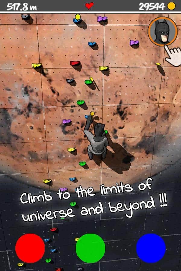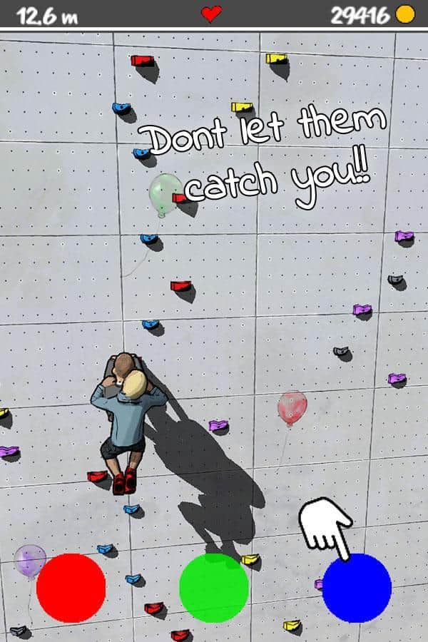Duvarı Tırman – Android için bir arcade oyunu, burada dağcıların dik duvara tırmanmasına yardımcı olacaksınız. Bu oyundaki ana hedefiniz, kahramanınızı mümkün olduğunca yükseğe çıkarmak ve aynı zamanda onu takip edenin yakalamasını sağlamaktır. Duvar boyunca mümkün olduğunca yükseğe tırmanın ve ekranın altında farklı renklere sahip özel düğmelere basın. Eğer düğmenin rengi tutamakla eşleşirse, kahramanınız bir adım daha ilerleyecek, aksi takdirde düşecek ve oyuna yeniden başlamak zorunda kalacaksınız. Hatalardan kaçının ve süper kahramanlar ve politikacılar gibi yeni kahramanlar keşfedin. Bonusları ve güçlendirmeleri kullanın ve liderlik tablosunda daha da yükseğe tırmanın.