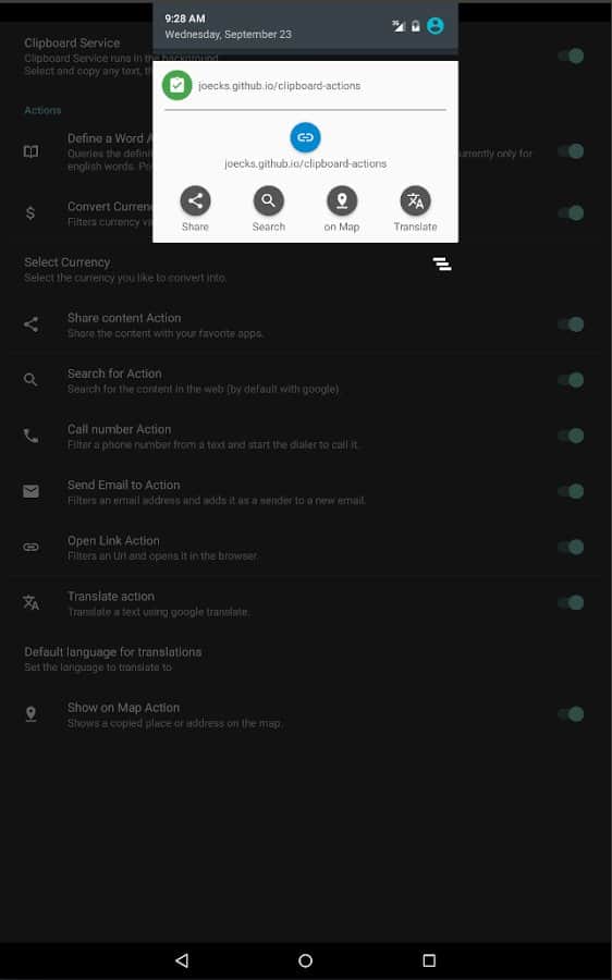 Pano Eylemleri - Akıllı telefonunuzda birçok işlevi kolaylaştıracak çok işlevli bir yardımcıdır. İster basit bir metin kopyalama, ister ihtiyaç duyduğunuz dosyaların indirilmesi olsun. Panoyu kullanarak, bu uygulama seçtiğiniz ve kopyaladığınız her şeyi kaydeder. Ayrıca, içinde birçok faydalı ek özellik barındırır, örneğin yerleşik döviz dönüştürücü. Ya da, kopyalanan koordinatların Google Haritalar'da aranması.