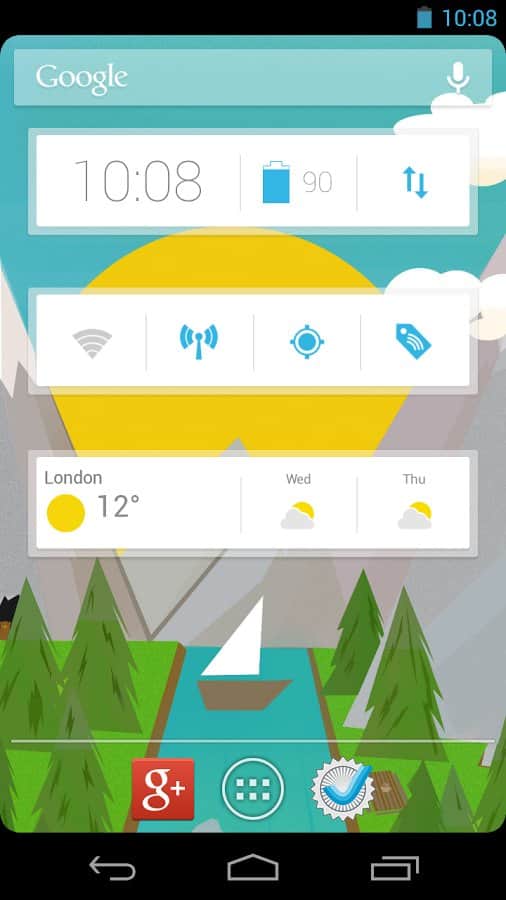 Saat Şimdi – Pastry Lab geliştiricisinden android cihazlar için harika bir arayüz, Google Now duvar kağıdı tarzında tasarlanmıştır. Saat Şimdi, pil durumu, hava durumu ve saat gibi widgetlardan oluşan bir set sunmaktadır. Ayrıca, widgetlardan biri çeşitli fonksiyonların (wi-fi, gps vb.) açma/kapama anahtarı olarak hizmet etmektedir. Size güneşli hava, harika zaman geçirme ve bitmeyen yaşam enerjisi dileriz!