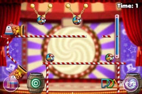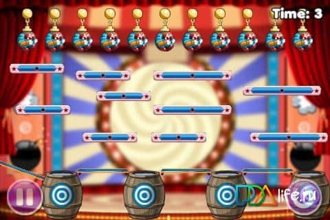 Sirkte Şaka Yapmak - Android için eğlenceli bir sirk arcade bulmaca oyunudur. Cihazınızda sizi bekleyen sirk ve palyaçolar var. 75 seviyenin her birinde amacınız palyaçoya su dolu fıçıya ulaşmasına yardımcı olmaktır. Bu kolay değil! Bunu başarmanıza yardımcı olacak zıplamanıza ve itmenize yardımcı olan toplar, mekânda hareket ettiren sihirbaz şapkaları, düğmeler, toplar, ip kesme gibi araçlar var. Ayrıca farklı renklerdeki palyaçolar var ve bunlar uygun renkteki fıçıya ulaşmak zorundalar. Birçok görev var, ama tüm yardımcı araçları akıllıca kullanıp sonuca ulaşmanız mümkün mü - bunu sadece siz bilirsiniz!