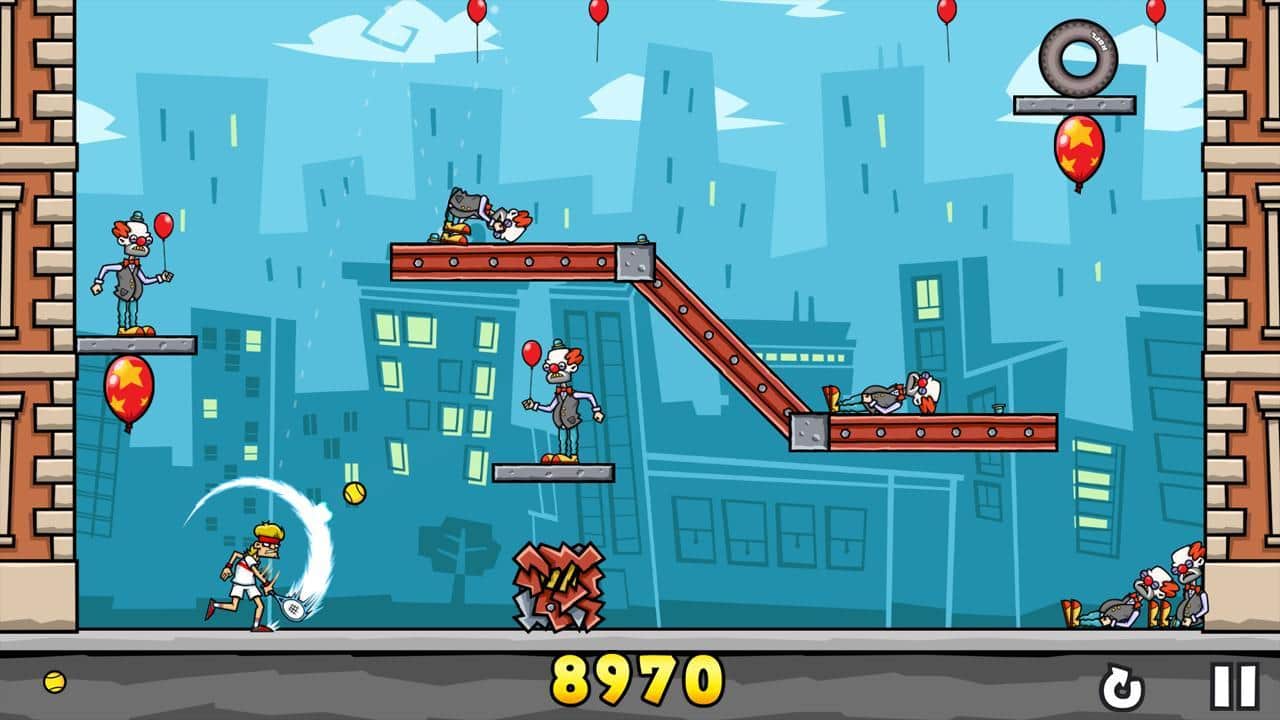 Yüzdeki Palyaçolar – Android için eğlenceli bir oyun, burada palyaçoları tenis toplarıyla devireceksiniz. Bu oyunda ana karakter olan tenisçiyle kontrol edeceksiniz, palyaçoları nefret eden birisi, ama ne yazık ki her taraftan onu çevrelemiş durumdalar ve elinde sadece raket ve top ile onları devirmekten başka seçeneği yok. Raketle vurmak için kollarınızı sallayın ve topun uçuş yolunu ve darbe gücünü doğru bir şekilde hesaplayın. Topunuzun farklı yüzeylerden sekebileceğini dikkate alın ve bu özelliği kendi lehinize kullanın.