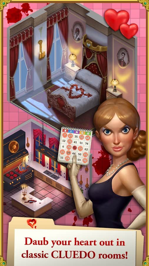 CLUEDO Bingo: Sevgililer Günü - bir tür dedektif oyunu, tuhaf bir hayranı bulmanız gereken bir hikaye anlatıyor. Yeni odaları açın. Her türlü ödülü kazanın ve gerçek bir dedektif gibi araştırma yapın. İpuçları her yerde gizlenmiş olabilir, bu yüzden titiz bir yaklaşım bu durumda tam olarak ihtiyacınız olan şeydir. Arkadaşlarınızla oynamak çok daha ilginç hale geliyor. Oyunda çok sayıda kart var, bu da onu daha da eğlenceli kılıyor.