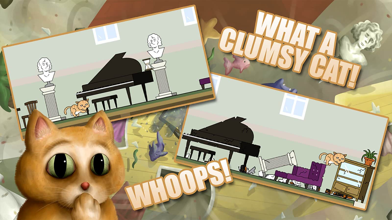 Aşırı Dikkatsiz Kedi - İstediğiniz her türlü yaramazlığı yapın ve sahiplerinizin sizi azarlamayacağını umun! Oyun süresince bir ev, müze, okul ve alışveriş merkezini ziyaret edeceksiniz ve bu yerler birçok odadan oluşmaktadır. Her odada kolayca yok edilebilecek belirli sayıda eşya ve zıplamak ya da hızlı koşmak için geniş bir alan bulunacak. Her şeyi siz yapmamış gibi davranın ve her ne pahasına olursa olsun cezada kaçının, tam bir kaos yaratma sürecinin tadını çıkarın. Ne kadar çok şey kırılırsa veya bozulursa, sizin için o kadar iyi.