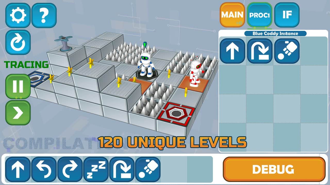 Coddy: Algoritmada Dünya - Bu oyunda küçük bir robotu yöneteceksiniz, labirentlere düşmüş. Robotu kurtarmak için onu kontrol etmeli ve yönetimi için en basit algoritmaları yazmalısınız.