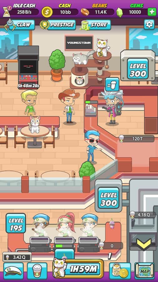 Kahve Çılgınlığı - Tembel Barista Tycoon, Android için mükemmel bir simülatördür, burada kafelerinizi yöneteceksiniz. Kendi kahve imparatorluğunuzu inşa edin ve dünya çapında kafeler açın. Müşterilere çeşitli kahve içecekleri satın ve önemli miktarda para kazanın, böylece işinizi geliştirmenin yollarını bulun. Küçük bir kafeden başlayın ve yavaş yavaş işinizi geliştirin ve genişletin, onu mükemmelliğe ulaştırın. İşinizin büyümesini sağlamak için deneyimli yöneticileri işe alın. Dünya genelinde yeni kafeler açın ve bunları etkili bir şekilde yönetin. Kafelerinizi dünya standartlarına ulaştırın ve daha fazla içecek yapın.